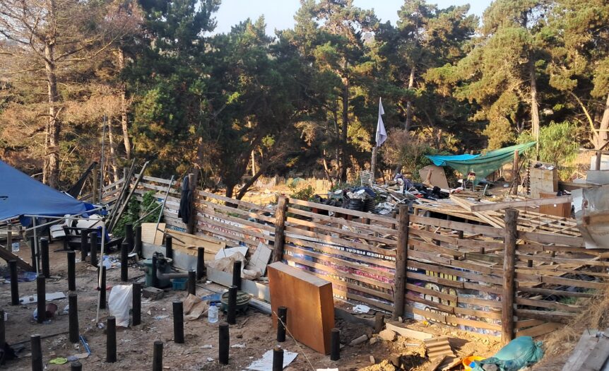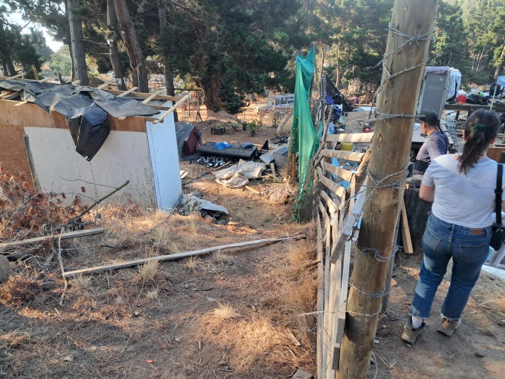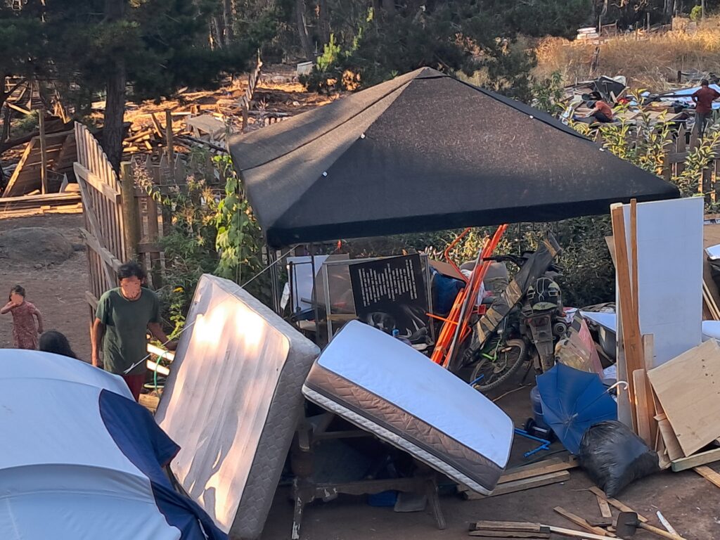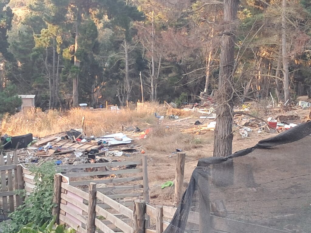Acá en la ladera poniente del cerro Centinela, cerca del mar, entre los pinos, pareciera que pasó un tornado. Y no fue el viento: fue la máquina. Donde había una casa, donde vivía gente, la retroexcavadora pasó, quebró, dejó el destrozo a nivel del suelo y se fue a la próxima como si nada.